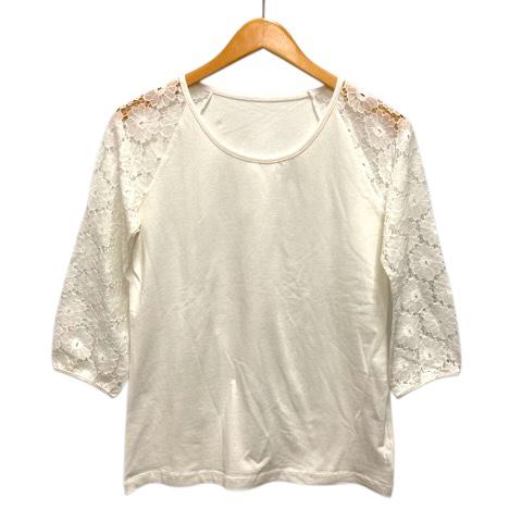 【中古】オットー OTTO Tシャツ カットソー クルーネック レース 七分袖 M 白 ホワイト レディース