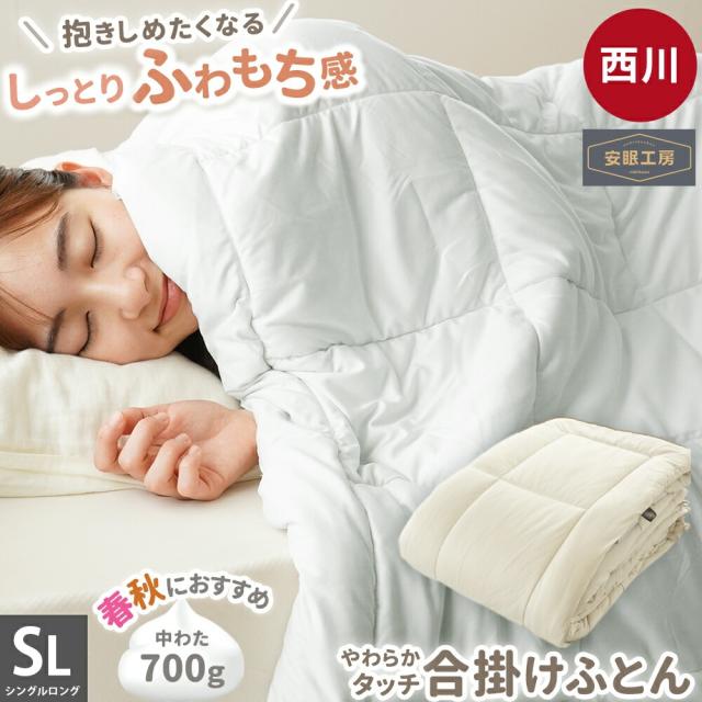 [keyword|西川 もちふわマイクロ天竺 合掛け布団 掛け布団 シングルロング 150×210cm ふとん 春 秋 合繊 寝具 洗える ベージュ アイボリー グレー 無地 ふわふわ もちもち キルト 当社限定]
