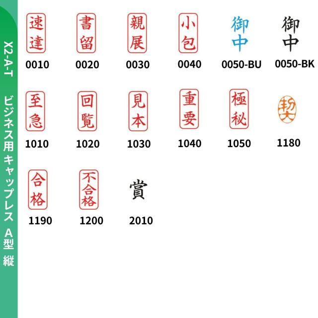 【ビジネス用キャップレスA型 縦 (X2-A-T) 印面 バリエーション】