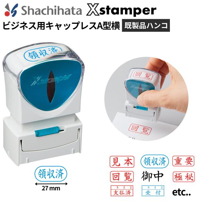 シャチハタ Xスタンパー ビジネス用キャップレスA型 ヨコ (X2-A-Y) 角型印 既製品ハンコ スタンプ 浸透印 インキ内蔵 インク内蔵 判子 はんこ シャチハタスタンプ 連続捺印 ビジネス用印鑑 会社 法人 領収書 請求書 角判 仕事 経理 事務 用品 ビジネス キャップレス