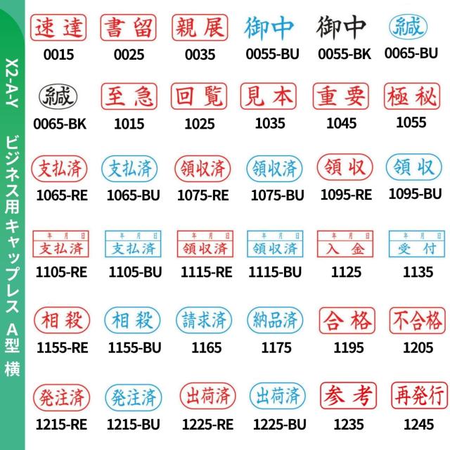 【ビジネス用キャップレスA型 横 (X2-A-Y) 印面 バリエーション】