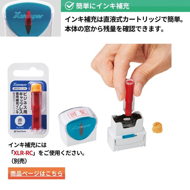 定番のシャチハタ Xスタンパー 角型印(既製品) は、スタンプ台不要で連続して捺印できる浸透印です。特殊機構により、細かい文字もクッキリ鮮明な印影が安定して得られます。インク補充なしで長期間使用できますが、別売の専用の補充インク(XLR-RC) もご用意しています。高性能、高品質で、オフィスやビジネスシーンの定番アイテムです。持ち運び時にキャップをロックでき、インク漏れを防止し、カバンや書類が汚れる心配もありません。キャップレス設計で、キャップを外す手間なくすぐに捺印でき、ビジネスの現場で活躍します。