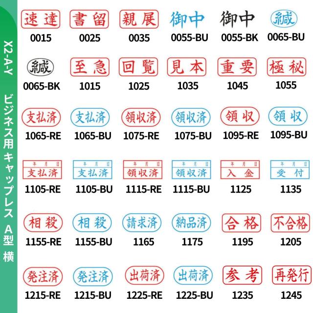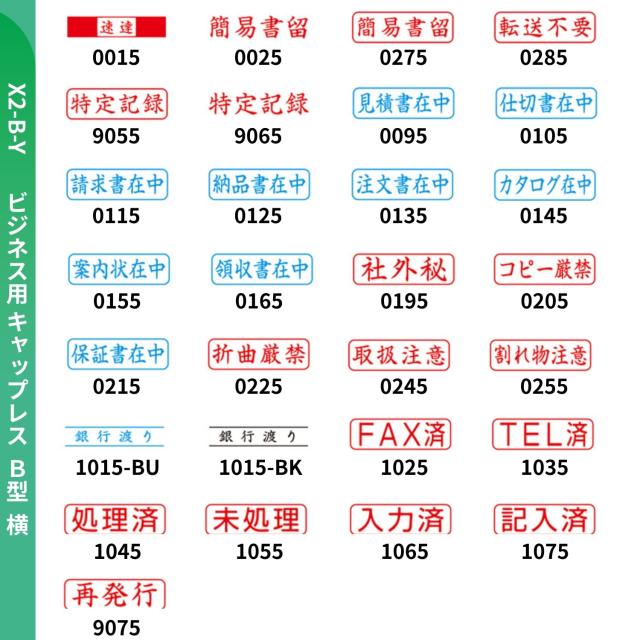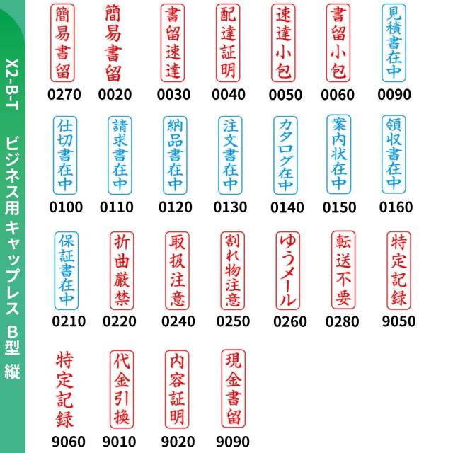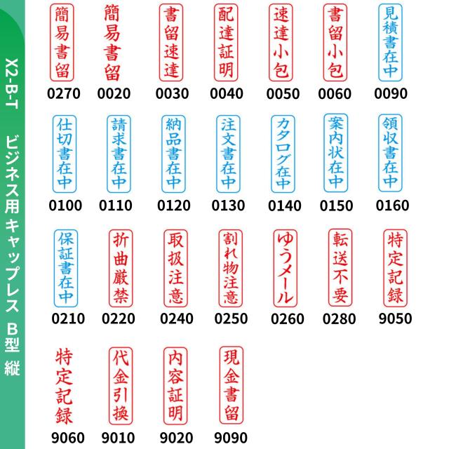 【ビジネス用キャップレスB型 縦 (X2-B-T) 印面 バリエーション】