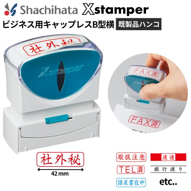 シャチハタ Xスタンパー ビジネス用キャップレスB型 ヨコ (X2-B-Y) 角型印 既製品ハンコ スタンプ 浸透印 インク内蔵 判子 はんこ シャチハタスタンプ 連続捺印 ビジネス用印鑑 会社 法人 領収書 請求書 角判 仕事 経理 事務 用品 ビジネス キャップレス