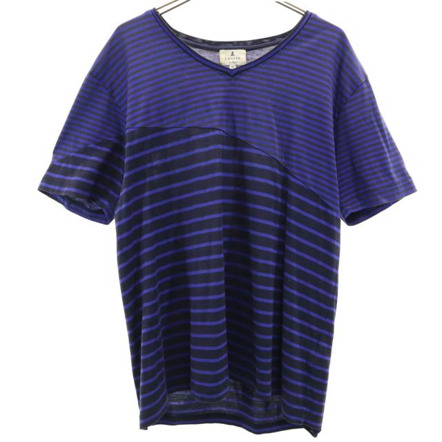 LANVIN en Bleu ランバンオンブルー 日本製 ボーダー柄 半袖 Vネック カットソー 50 ブルー メンズ