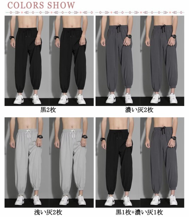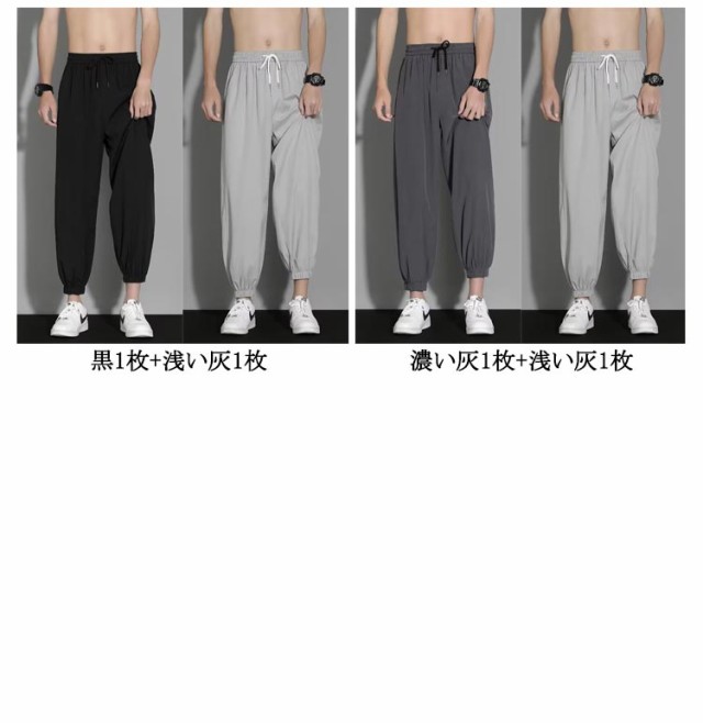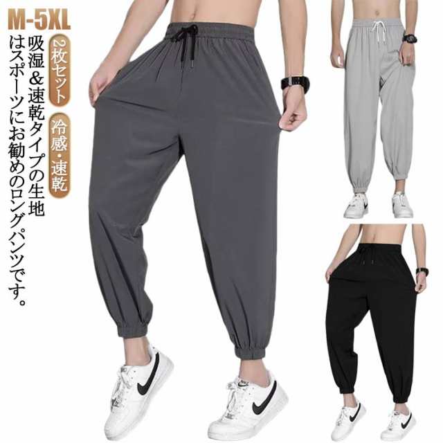 夏 接触冷感 パンツ 長ズボン メンズ ジョガーパンツ ひんやり 薄手 ひんやり イージーパンツ 2枚セット カジュアル ストレッチ ジャージ 下 UVカット スポーツ 速乾 軽量 大きいサイズ 夏服 ロングパンツ 普段着 涼しい