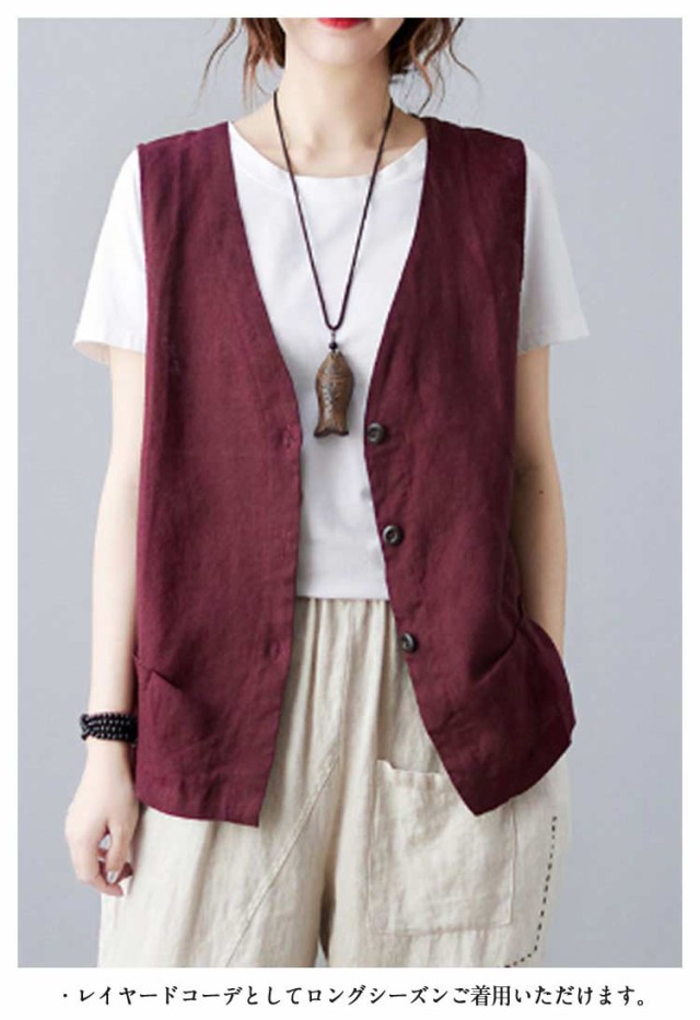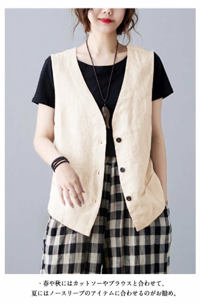 ジレ レディース ベスト レディース 春夏 ベスト レディース 夏 ベスト レディース おしゃれ ベスト ベスト 薄手 前開き トップス ゆったり 大きいサイズ コットン ノースリーブ 羽織り オフィス カジュアル 重ね着 通勤 OL 30代 40代 50代