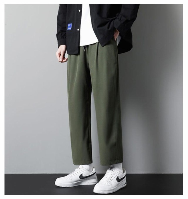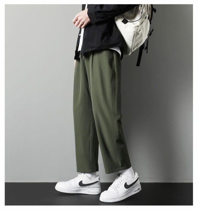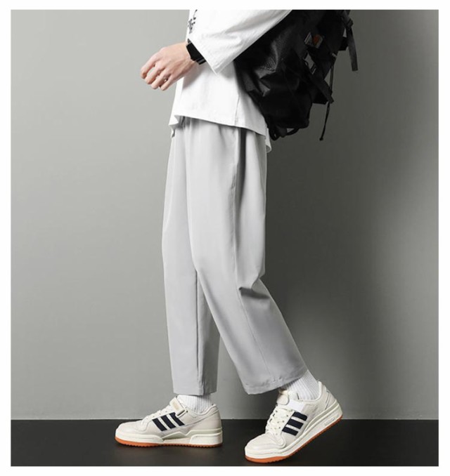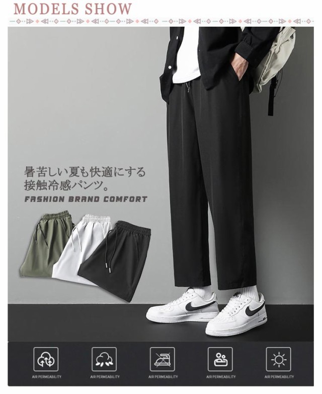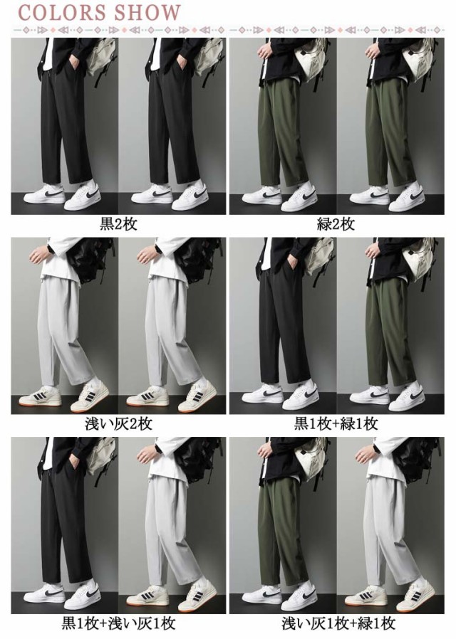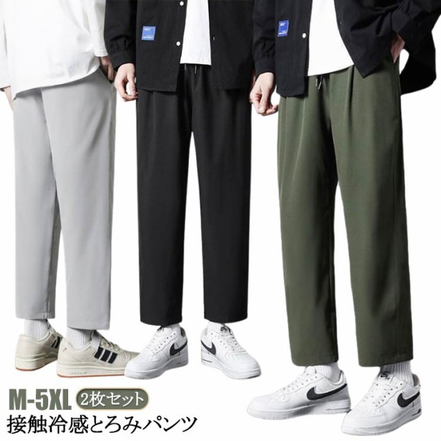 接触冷感 速乾 夏 ワイドパンツ スラックス 涼しい メンズ ルーズ 伸縮 冷感パンツ 2枚セット イージーパンツ ズボン 薄手 韓国 ボトムズ ストレッチ 黒 大きいサイズ ウエストゴム 薄手 ファッション 夏服 パンツ