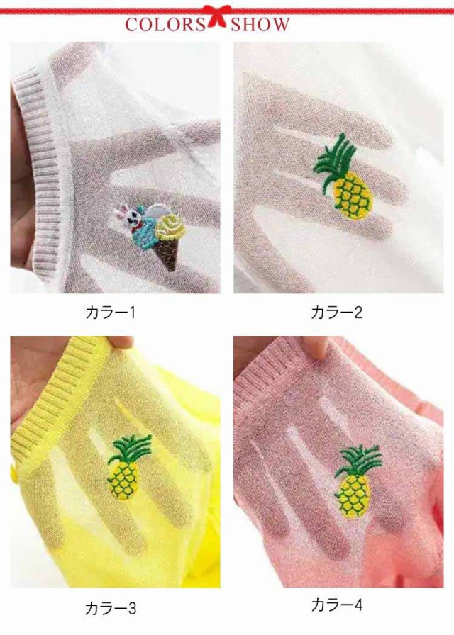 女の子 UVカット カーディガン 冷感 日焼け止め ニット 羽織り 子供用 サマーカーディガン 長袖 薄手 ジュニア パイナップル 刺繍 可愛い 夏服 90?160cm 送料無料