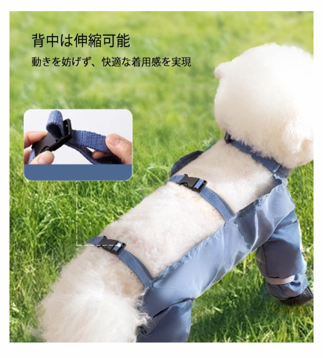 | ワンちゃんの快適さと清潔を守る一枚 レッグカバー 防水素材使用。雨の日や濡れた地面でも汚れにくく、お手入れ簡単 4本足をしっかりカバーして、泥はねやホコリからしっかりガード 背中は伸縮可能。動きを妨げず、快適な着用感を実現 裾はゴムでサイズ調整可能。ワンちゃんの足にフィットしやすく、ズレにくい | |