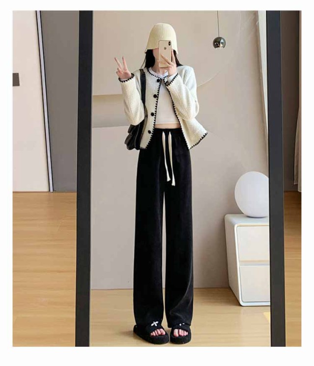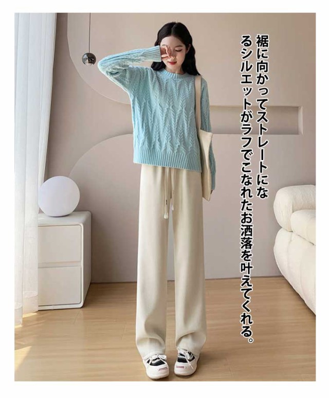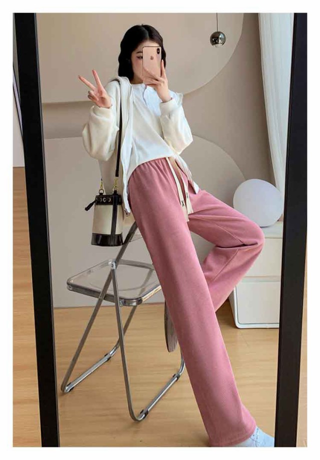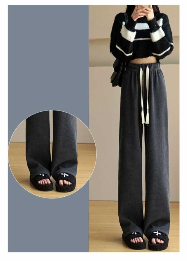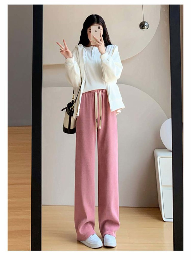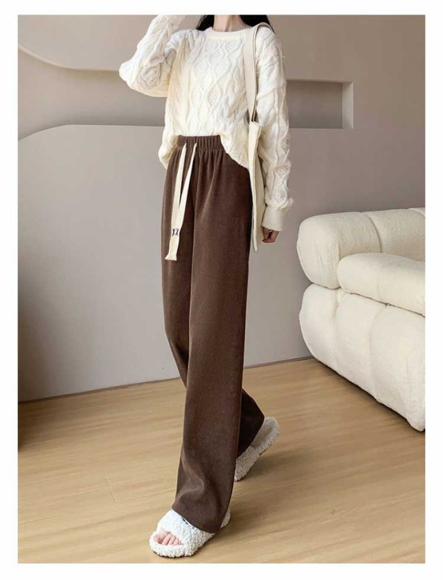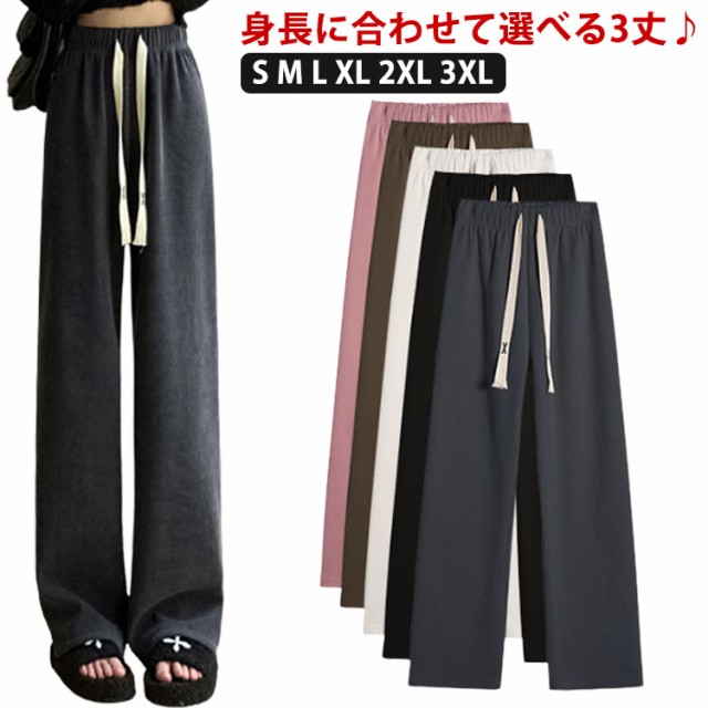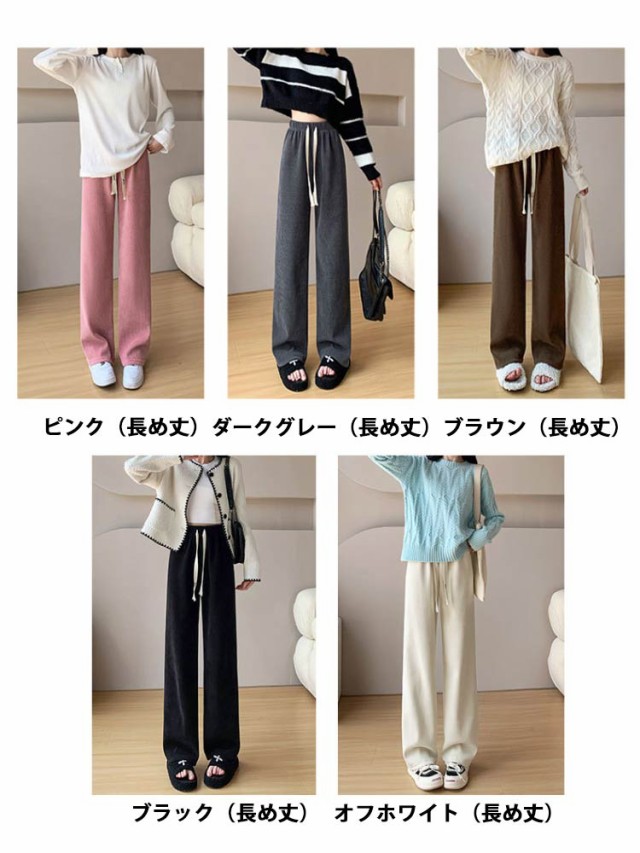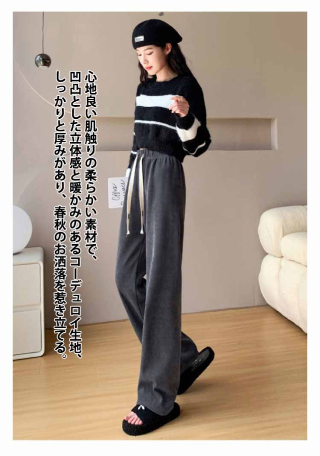 コーデュロイパンツ レディース セミワイドパンツ セミ ワイド パンツ 春秋 ロング ゆったり ストレートパンツ ウェストゴム ロングパンツ 短め 長め 普通丈 長ズボン ウェスト紐 部屋着 秋物 ストレート 体型カバー イージーパンツ 無地