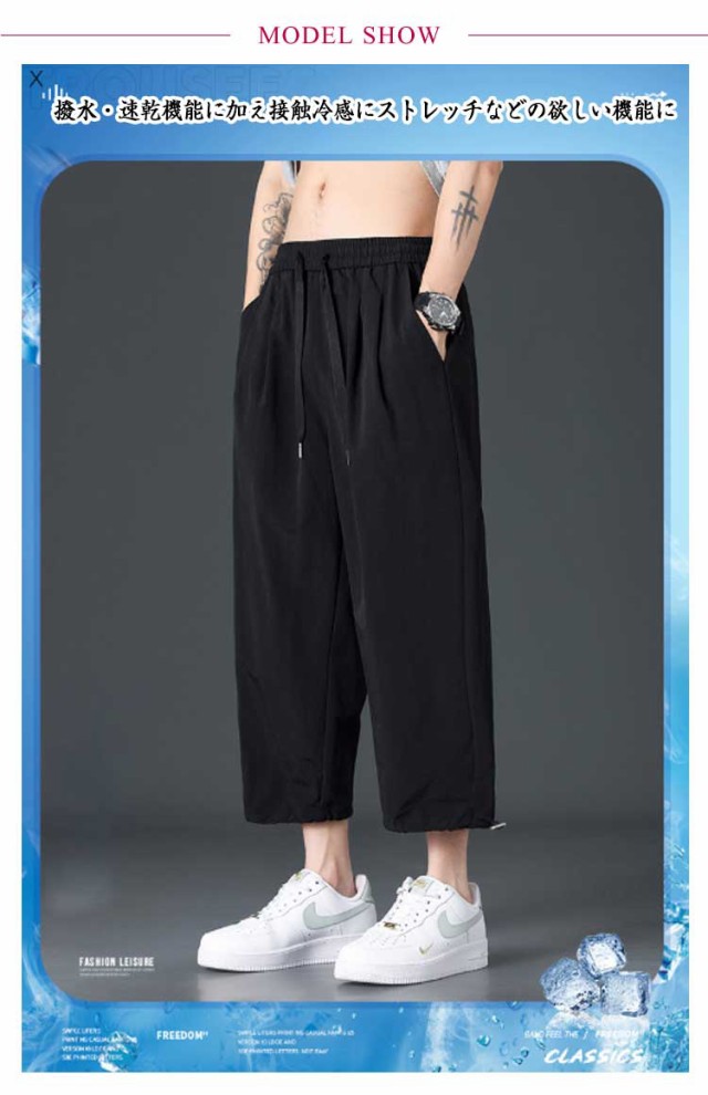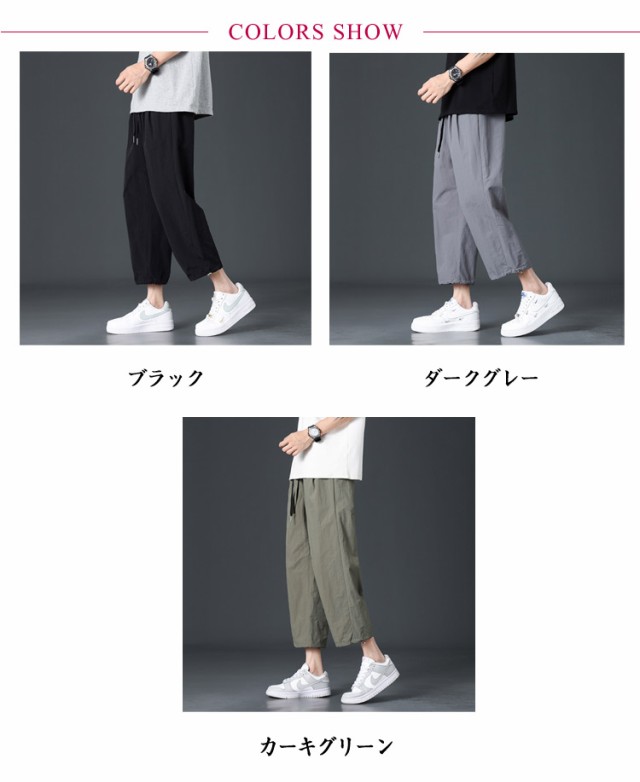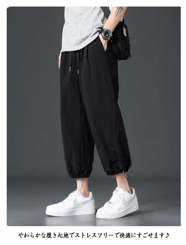 アンクルパンツ メンズ 吸汗 速乾 ドライ ストレッチ 無地 8分丈 ジョガーパンツ スポーツ アウトドア 7分丈 サルエルパンツ ウェストゴム ワイドパンツ ゆったり ズボン イージーパンツ 夏ズボン 夏パンツ メンズファッション 涼しいパンツ