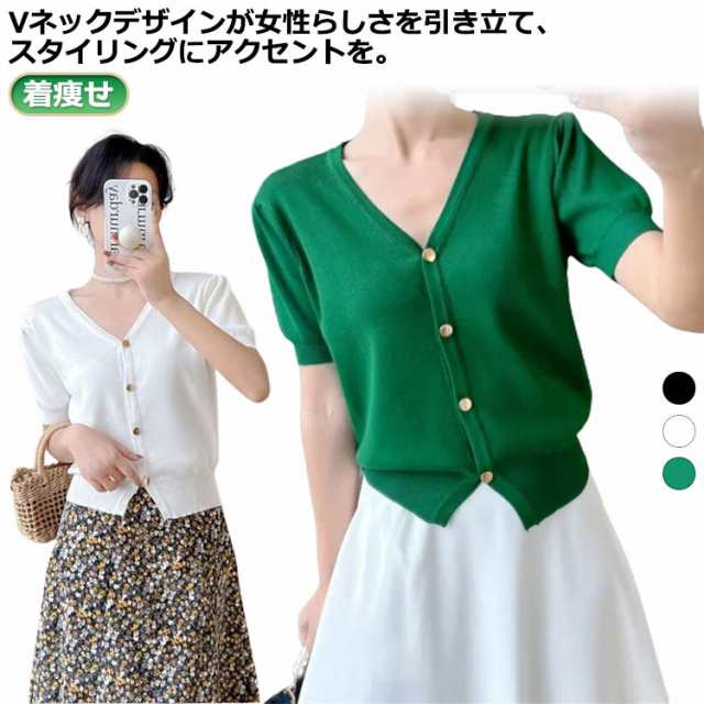 tシャツ レディース 羽織 夏 春 おしゃれ 冷感 ニットカーディガン 薄手 通勤 ショート丈 サマーカーディガン 半袖カーディガン 半袖 Vネック ニットトップス カジュアル オフィス 着痩せ UVカット 冷房対策 紫外線対策 きれいめ カーディガン