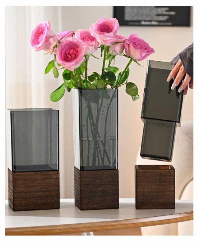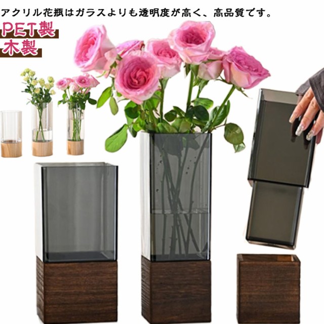 割れない 花瓶 おしゃれ 一輪挿し 大きい フラワーベース PET製 木製 造花 生花 枝物 グリーン インテリア 玄関 寝室 店舗 ホテル 雑貨 洋室 和室 リビング 透明 ブラック シンプル 北欧 透明 食卓 花びん 植物 新築祝い 送料無料
