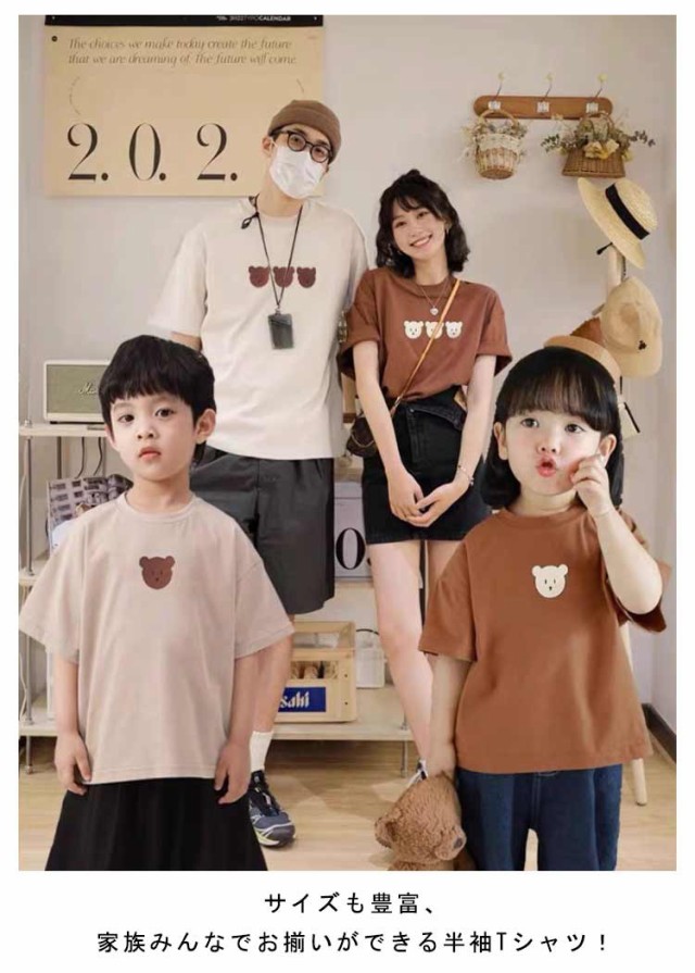 超かわいい熊柄!親子 おそろい プレゼント Tシャツ ペアルック クマちゃん ロンパース 赤ちゃん 男の子 女の子 パパ ママ 娘 息子 出産祝い 誕生日 リンクコーデ 双子 コーデ お揃い おそろい 兄弟 姉妹 ベビー 家族 写真 韓国子供服