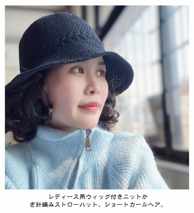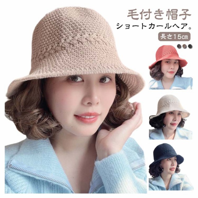 毛付き帽子 ウィッグ付き 帽子 ストローハット 帽子付きウィッグ ウィッグ付き帽子 髪付き帽子 春 夏 秋 冬 レディース 婦人 ニットかぎ針編 麦わら帽子 メッシュ 通気性 医療用帽子 医療用ウィッグ かつら 自然 ショート カール ウェーブ 人工毛 耐熱