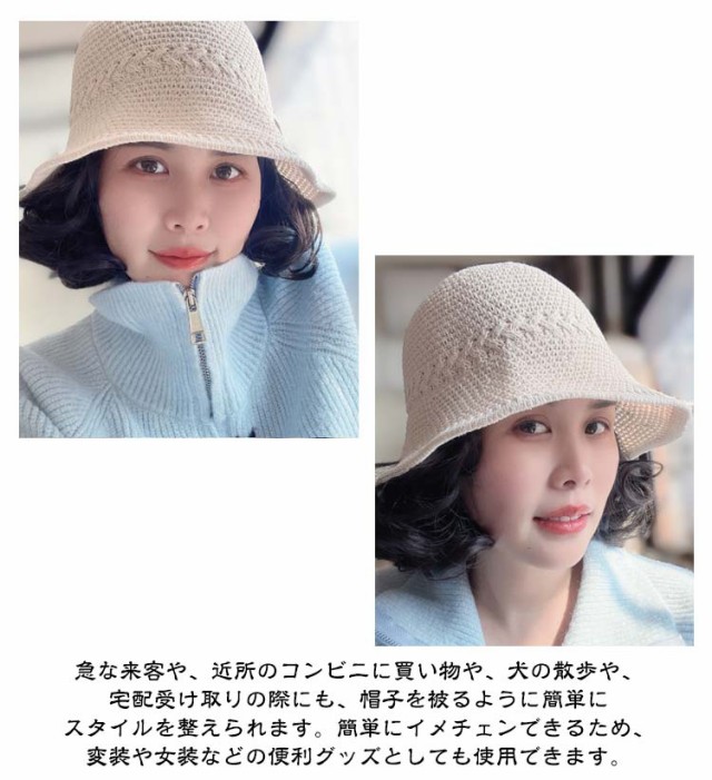| レディース用ウィッグ付きニットかぎ針編みストローハット。ショートカールヘア。 大人可愛さを演出してくれる手軽な帽子ウィッグです。自然すぎて誰からも気づかれずショートヘアーを楽しめます。 超便利で一瞬で変身!カールショートヘアに! ウィッグ初心者さんも挑戦しやすい型です。高級耐熱ファイバーを採用、今まで気になっていたウィッグ特有のテカリ感を抑え、より人毛に近づけたしっとりとした柔らかな手触り。 急な来客や、近所のコンビニに買い物や、犬の散歩や、宅配受け取りの際にも、帽子を被るように簡単にスタイルを整えられます。簡単にイメチェンできるため、変装や女装などの便利グッズとしても使用できます。 メッシュタイプのストローハットは通気性が高く、長時間かぶっても、窮屈感もなく、ゆったりとかぶれるサイズ感。深さがあるシルエットで、安定感がある被り心地!驚きの軽さと心地よさ。 肌触りが良い生地なので頭皮への負担も少なく、ウィッグ装着時も快適にお過ごしいただけます。 アイロン使用可能。 | |