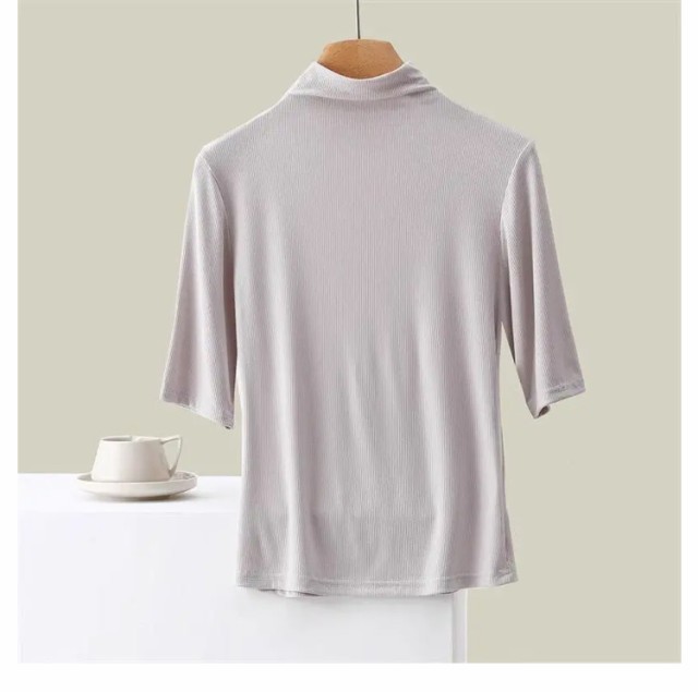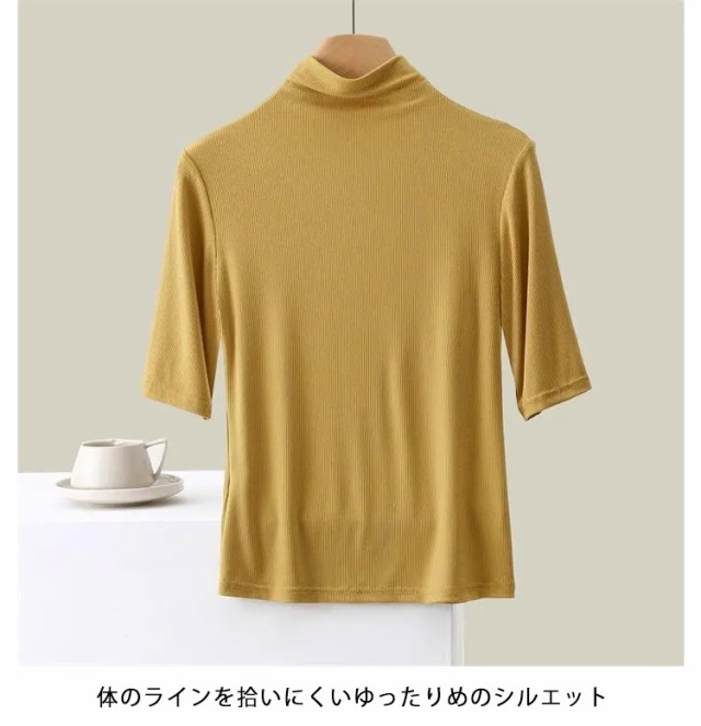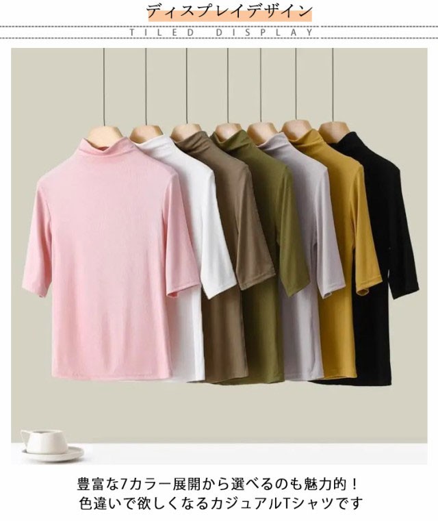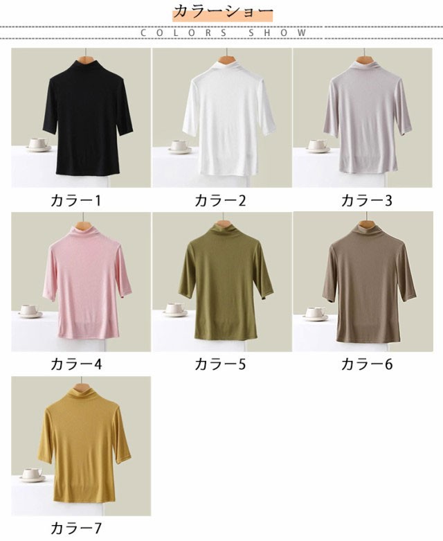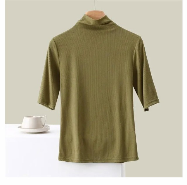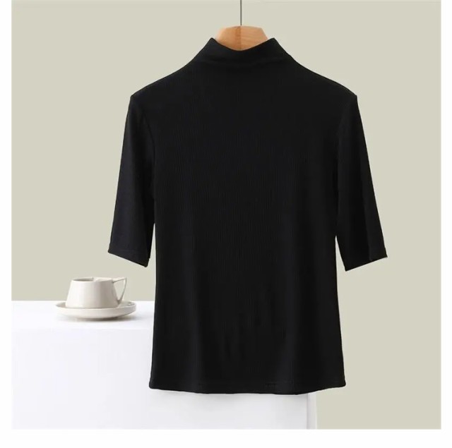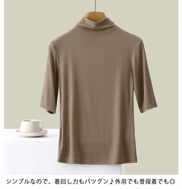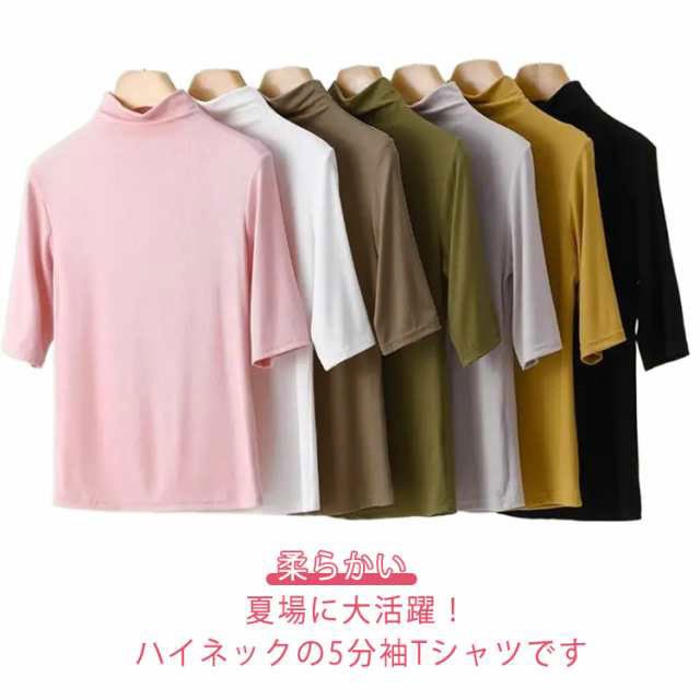 ハイネック 半袖 五部袖 タートルネック レディース 半袖トップス Tシャツ 薄手 インナー ハイネックカットソー 半袖tシャツ 五分袖 柔らかい 伸縮 ストレッチ 重ね着 インナー 柔らかい フィット レイヤード サマーシャツ