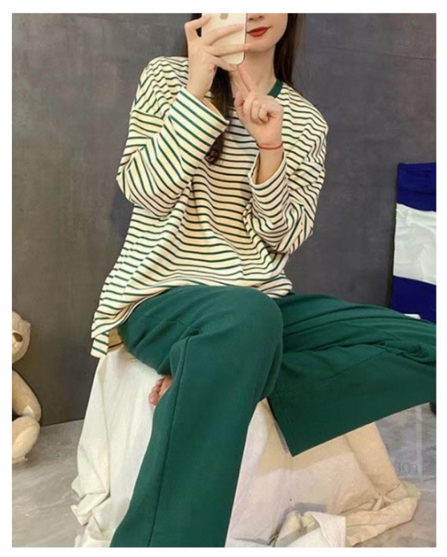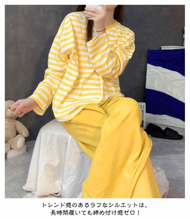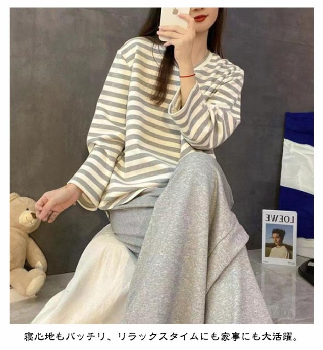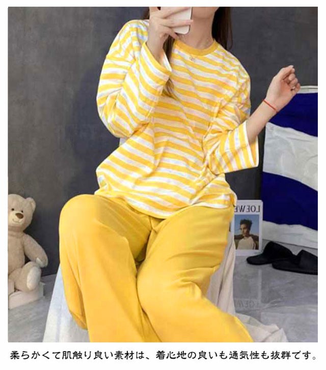 ルームウェア レディース 長袖 上下セット パジャマ 寝間着 寝巻き セットアップ Tシャツ ロングパンツ ナイトウェア ボーダー柄 ママ 部屋着 女性用 春秋 リラックス お洒落 カジュアル 送料無料