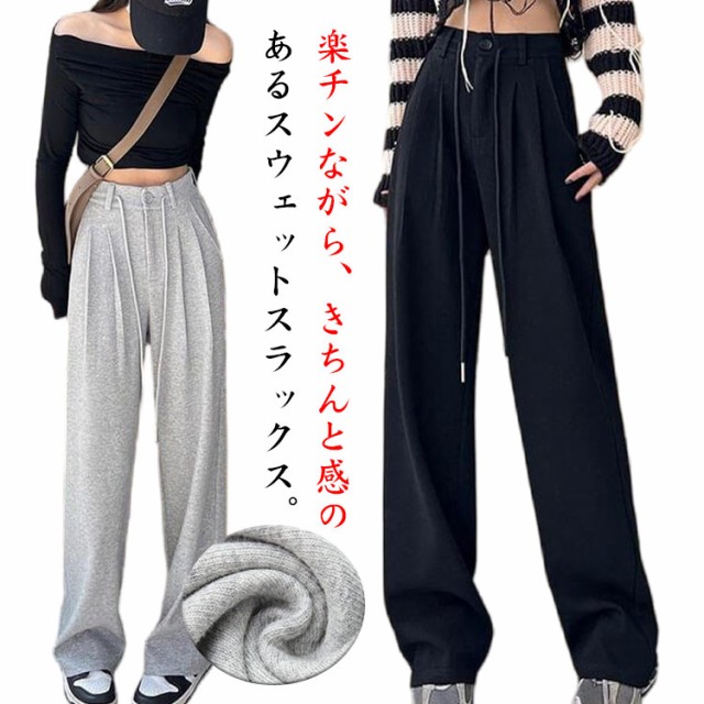 ストレッチパンツ スウェットパンツ タック入り スエット スラックス レディース スウェットスラックス ポケット付 ストレート ワイドパンツ セミワイド 春パンツ 春夏 秋 きれいめ 下半身をカバー フロントボタン 美脚 送料無料
