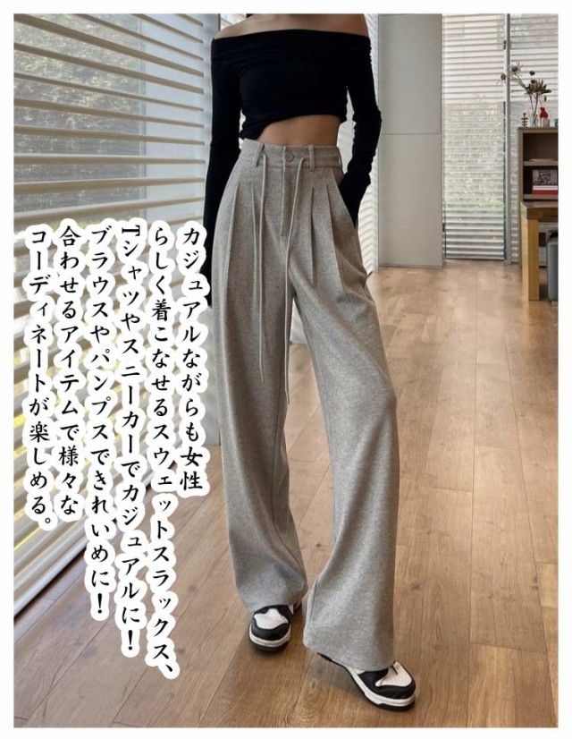 | 楽チンながら、きちんと感のあるスウェットスラックス。 前開き&タック入りデザインはややきちんと感があり、オフィスカジュアルやお出かけシーンに大活躍。 さらりとしたセミワイドスウェットパンツ、柔らかくリラックス感あり、トレンドアイテムとも相性◎ カジュアルながらも女性らしく着こなせるスウェットスラックス、 Tシャツやスニーカーでカジュアルに!ブラウスやパンプスできれいめに! 合わせるアイテムで様々なコーディネートが楽しめる。 毎日穿きたくなる、スウェットワイドパンツ。 | |