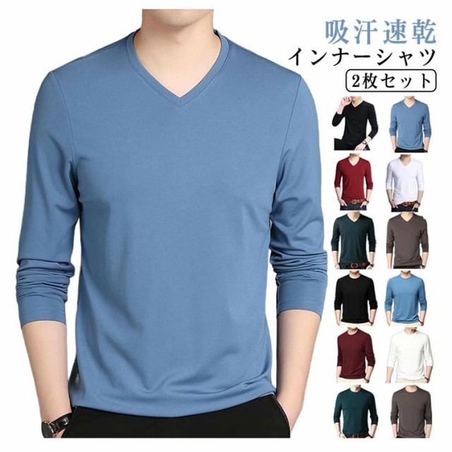 インナーシャツ メンズ 2枚セット 春夏 接触冷感 長袖 アンダーシャツ 丸首 Vネック ストレッチ インナーウェア 作業服 通気性 速乾 スポーツ トレーニングウェア ゴルフ 野球 サッカー バイク 釣り キャンプ 大きいサイズ 送料無料