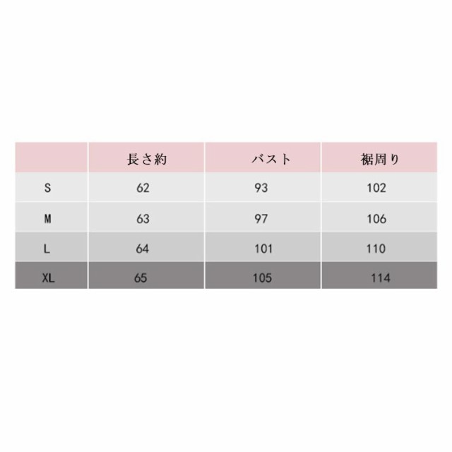 | サイズについての説明 | S 着丈62 バスト93 裾幅102 M 着丈63 バスト97 裾幅106 L 着丈64 バスト101 裾幅110 XL 着丈65 バスト105 裾幅114 ※サイズ表の実寸法は商品によって1-3cm程度の誤差がある場合がございます。 |