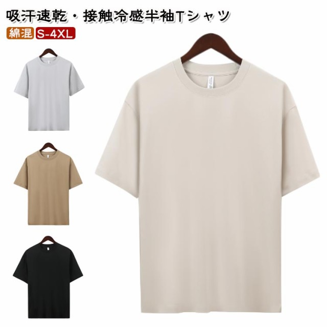 接触冷感 Tシャツ メンズ 半袖 大きいサイズ ストレッチ 吸汗 速乾 涼しい 半袖tシャツ ドライ 無地 カットソー 夏