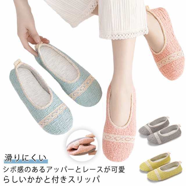 スリッパ ルームシューズ かかと付き 綿 コットン レディース 室内履き 室内 来客用 婦人 学校 靴 オフィス 職場 レース おしゃれ 上履き スリッポン 軽量 滑り止め 部屋 マタニティ 産後 くつ シューズ 春夏秋冬 送料無料