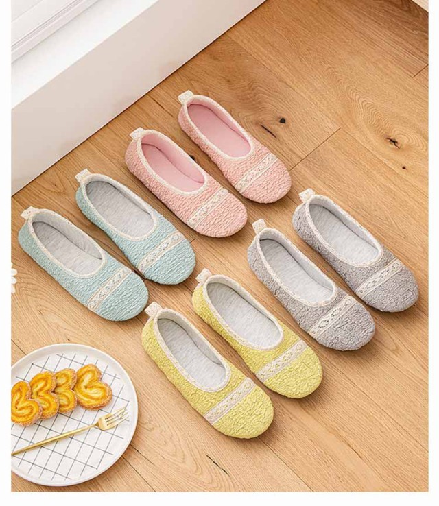 | シボ感のあるアッパーとレースが可愛らしいかかと付きスリッパ。 アッパーは綿のクレープ素材なので履き心地抜群! アウトソールには滑りにくいTPR素材を使用。凹凸のあるデザインはグリップ力を高め、歩行をサポートします。 ご自宅でのスリッパやお部屋でのルームシューズとしてはもちろん、会社のオフィス用や学校、体育館などあらゆる場面でお使いいただけます。 | |