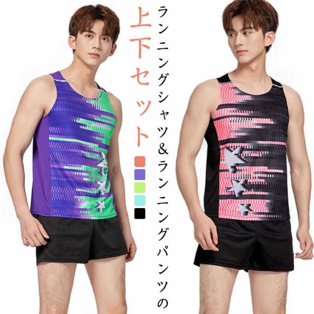 ランニングシャツ ランニングパンツ 上下セット 陸上 ユニフォーム ドライ 吸汗速乾 メッシュ メンズ レディース ノースリーブ 袖なし クラブ 陸上競技 部活 練習 女子 男子 マラソン レーシングシャツ レーシングパンツ