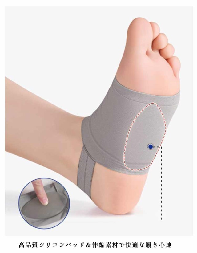| 靴下のように履くだけで簡単に足裏アーチをサポート かかと付きでズレにくい&フィット感UP! 足裏のアーチをサポートし、疲れや痛みを軽減 足底筋膜炎・偏平足にお悩みの方に最適! 高品質シリコンパッド&伸縮素材で快適な履き心地 歩くと足が疲れやすい・足の裏が痛い 扁平足や足底筋膜炎、X脚・O脚にお悩みの方 ご自宅、お出かけ、通勤、スポーツなど様々なシーンで活躍してくれます | |