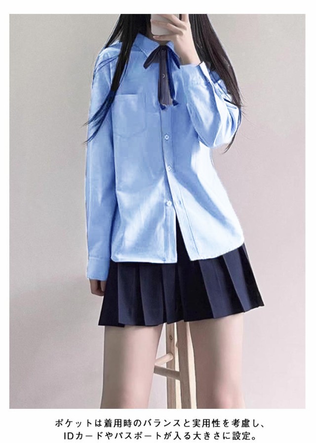 スクールシャツ レディース ワイシャツ 水色 制服 長袖 シャツ 学生 学生シャツ スクール 中学生 高校生 大学生 無地 シンプル jk 学院風 通学 春 春服 秋 秋服 女子高生 女子中学生 小学生 大人 仕事 スクールワイシャツ ガールズ