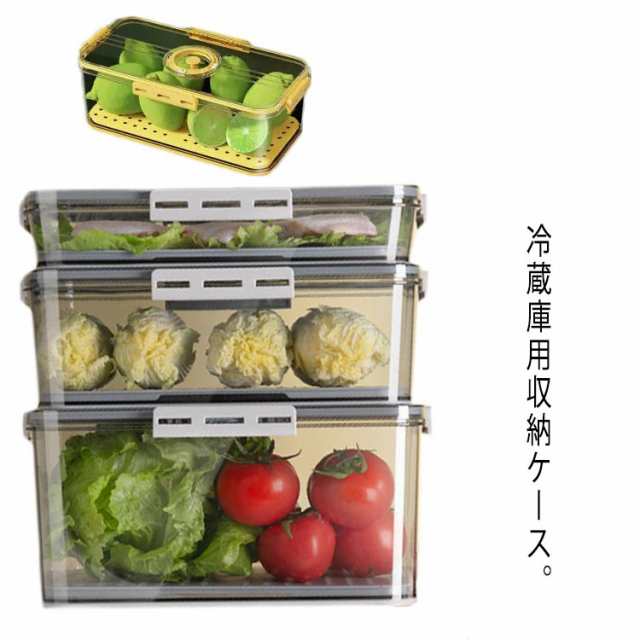 冷蔵庫 収納ボックス 食品 保存容器 果物 野菜 保存 収納ケース クリア 透明 冷蔵庫用 ケース 積み重ね可能 水切り 通気性 排水トレー付き 冷蔵庫収納 卵ケース 肉入れ 整理ボックス 省スペース キッチン収納 台所用品 キッチン 冷蔵庫 整理