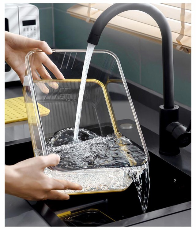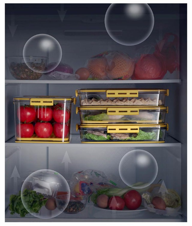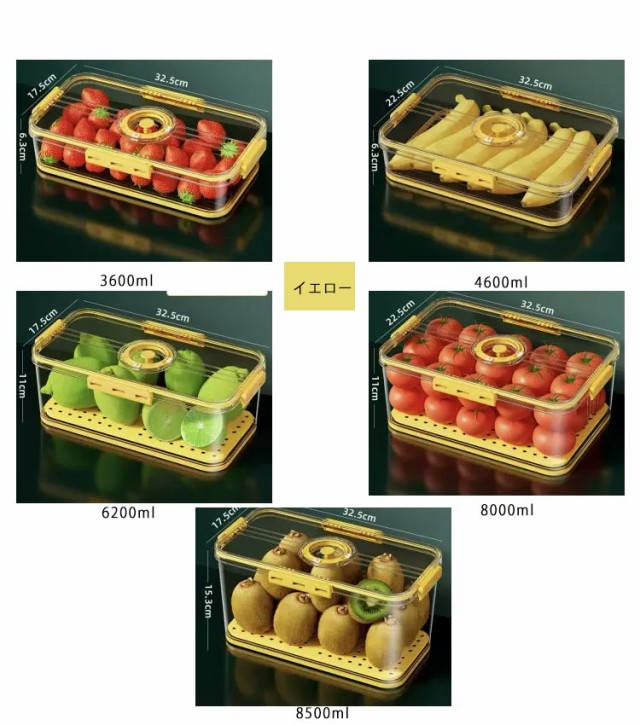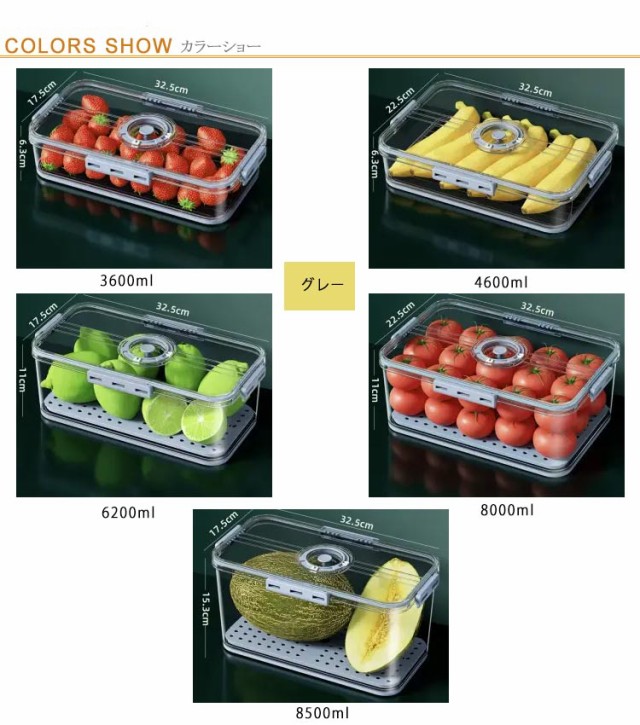 | 冷蔵庫用収納ケース。 透明で中身も一目でわかってとっても便利。 蓋には日付ダイヤルが付いているため、保存した日がわかりやすいです。 蓋の裏側は、シリコンゴムなので、汁物がもれたり、ニオイが移ったりすることを防いでくれて、密閉性がバッチリ! 取り外し可能な水切りトレー付き! スッキリとした形状は冷蔵庫に入れても、キレイにまとまってくれます。 シンプルな形状でサイズも豊富なので、冷蔵庫の整理にも最適です。 | |