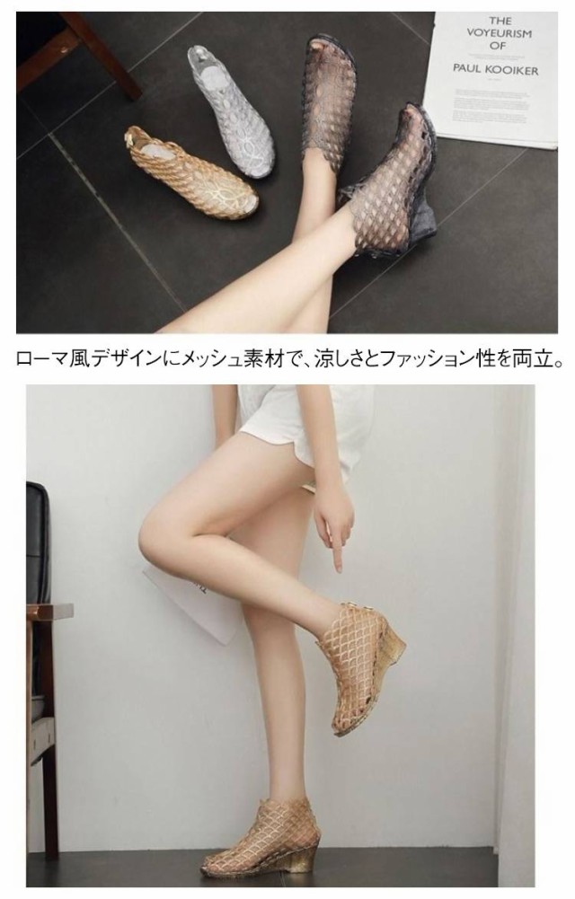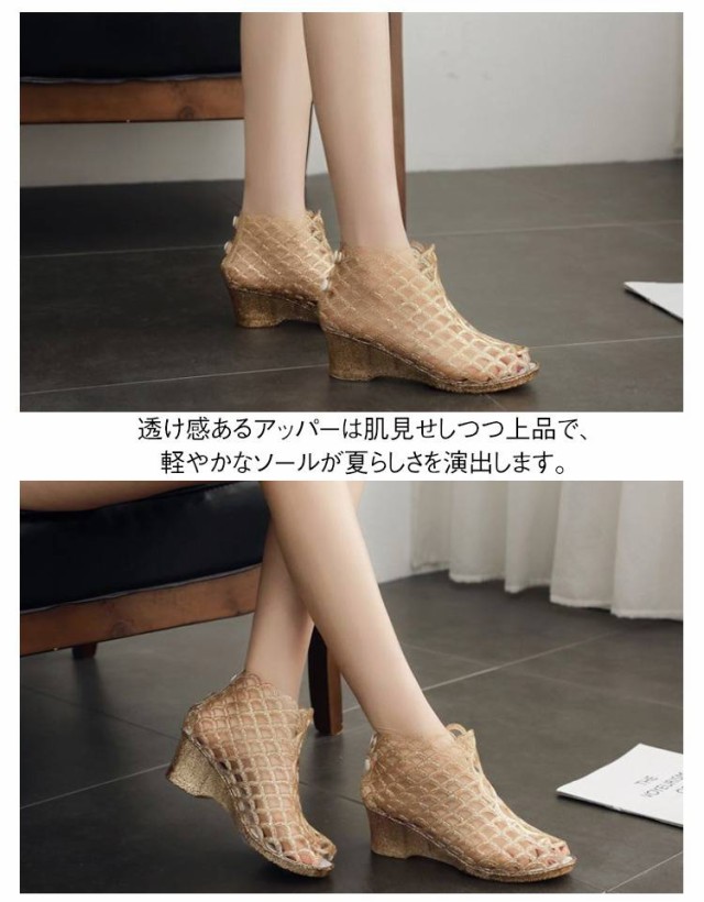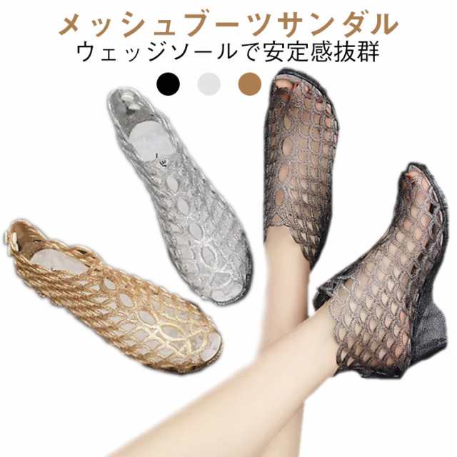 ウェッジソールサンダル メッシュサンダル サマーブーツ ヒールサンダル レディース 透け感 サンダル 美脚 肌見せ ウェッジソール ブーツサンダル おしゃれ かわいい 送料無料