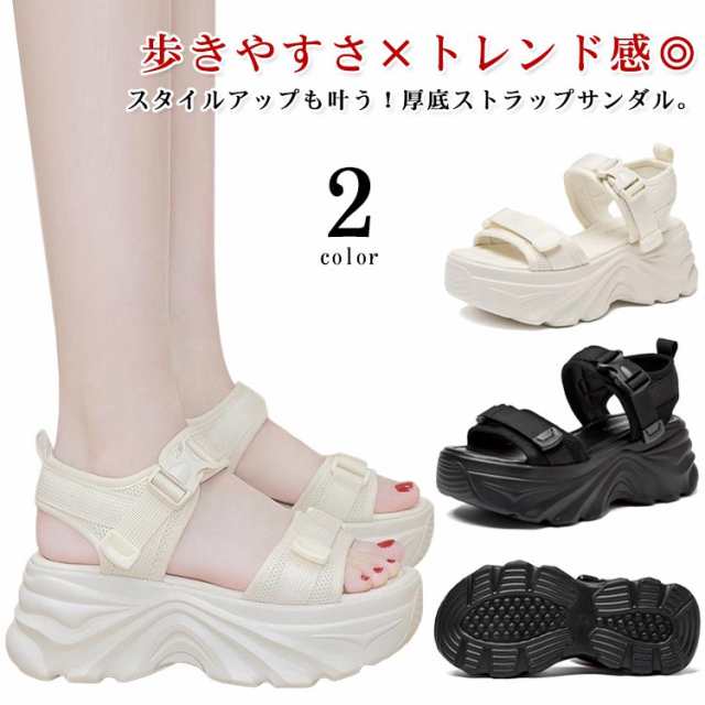 サンダル 厚底 レディース スポーツサンダル 厚底サンダル 5cm クッション マジックテープ ベルクロ ウェッジソール スニーカーサンダル 歩きやすい シューズ 靴 韓国ファッション オフィス カジュアル 軽量 滑り止め 美脚 スポサン おしゃれ アウトドア 女性
