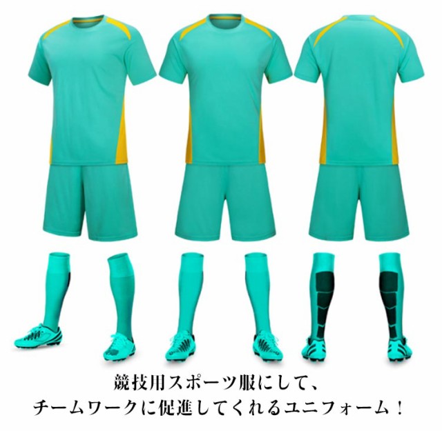 | 通気性優れる素材使用、半袖tシャツ+ショートパンツのスポーツウェア。 競技用スポーツ服にして、チームワークに促進してくれるユニフォーム! サッカー、ジョギングなどのスポーツシーンにもご利用いただけます。 | |