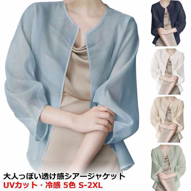 シアージャケット カーディガン レディース 長袖 サマーアウター ボレロ シアー シースルー シアー ジャケット 春 夏 透け 大人っぽい 透け感 UV 冷房対策 羽織 ノーカラー ボリューム袖 シフォン トップス 夏物 上品