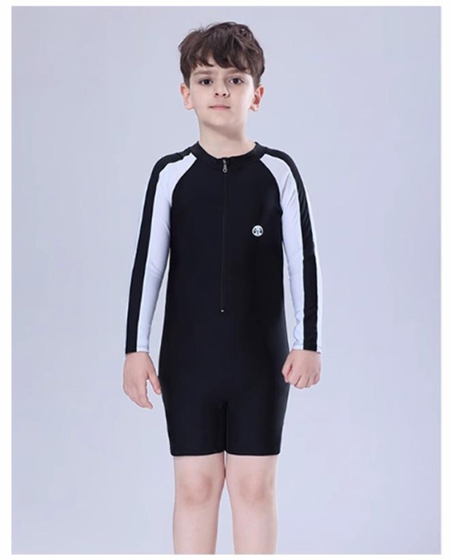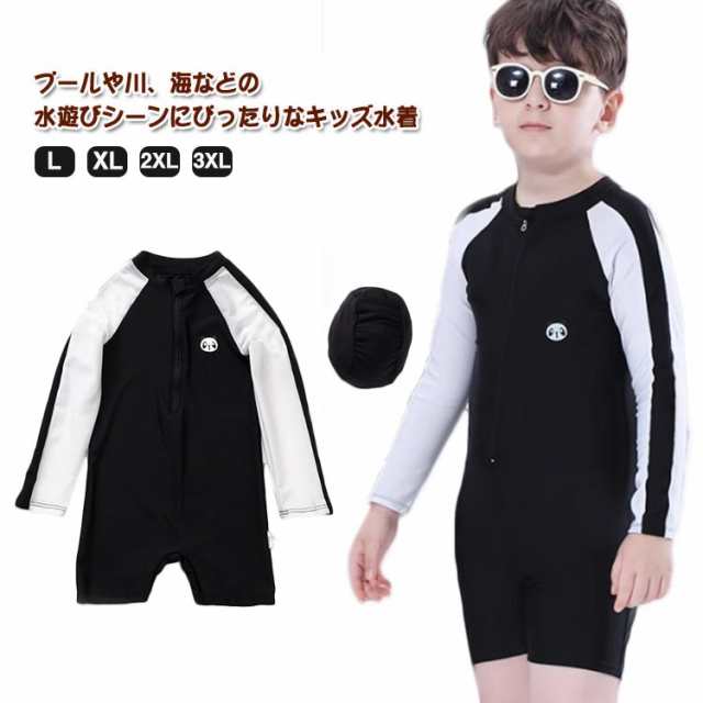 スクール水着 ラッシュガード キッズ 長袖 スイムキャップ付き スイムウェア 水泳帽子 ハーフジップ 男の子 男児 男子 小学生 子ども 子供 水着 オールインワン UVカット 紫外線対策 小学校 水遊び 水着 プール 水泳 ビーチ リゾート 練習着