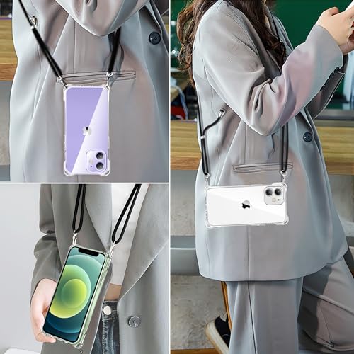 iPhone 11 ケース クリア ネック ショルダー ストラップ付き iPhone 11 スマホケース iPhone11 カバー 耐衝撃 薄型 軽量 TPUスマホ シリコン カバー 紐付き 斜めがけ 織りストラップ付き 肩掛け 縦 / 横 2WAY 調節可能なショルダー クロスボディ 多目的キャリー ファッションデザイン (透明)