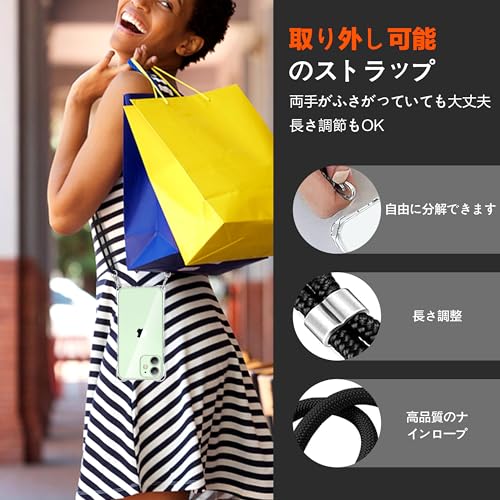 iPhone 11 ケース クリア ネック ショルダー ストラップ付き iPhone 11 スマホケース iPhone11 カバー 耐衝撃 薄型 軽量 TPUスマホ シリコン カバー 紐付き 斜めがけ 織りストラップ付き 肩掛け 縦 / 横 2WAY 調節可能なショルダー クロスボディ 多目的キャリ...
