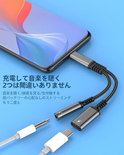 【2in1マルチ機能】USB Cと3.5mmイヤホンジャックを同時に使用できる、これ一つで音楽を聴きながら高速充電が可能。音楽、充電、通話、ライン制御に対応。