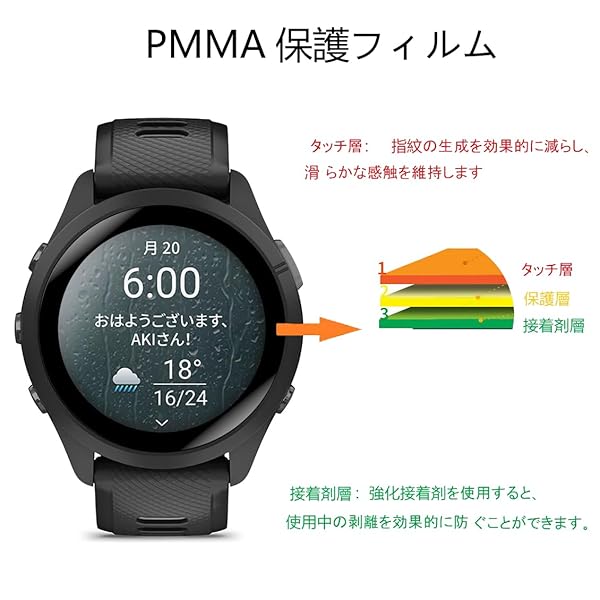 【透過率】時計の画面のクリアさと鮮明さを保ち、タッチ操作や視覚体験に影響を与えません。この製品は、PMMA複合材料で作られ、エッジがより容易に貼り付け泡しにくい、壊れていません