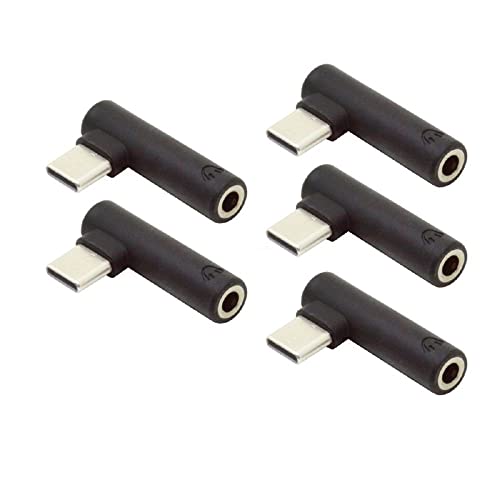 Type-Cから3.5mmイヤホンアダプター 90度角度タイプUSB-C 3.1オスからAUXオーディオメス5個セット。