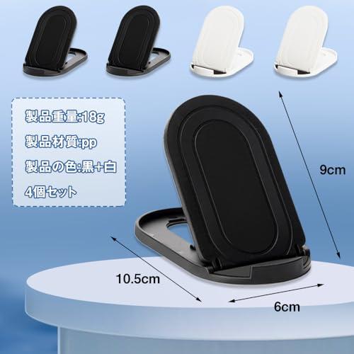 携帯電話スタンドサイズ:10.5x6cm、製品重量:18g、製品材質:pp、製品の色:黒+白、4個セット。