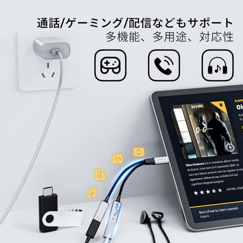 多機能&互換性強い】PC/Apple 15シリーズ/iPad pro 2022/2020/2018/iPad air 2020/Sony Xperia, Google Pixel 、Samsung Galaxy,XIAOMI, huawei Mate など、USB Type-C端子からの音声出力に対応したスマートフォンおよびタブレットに対応し