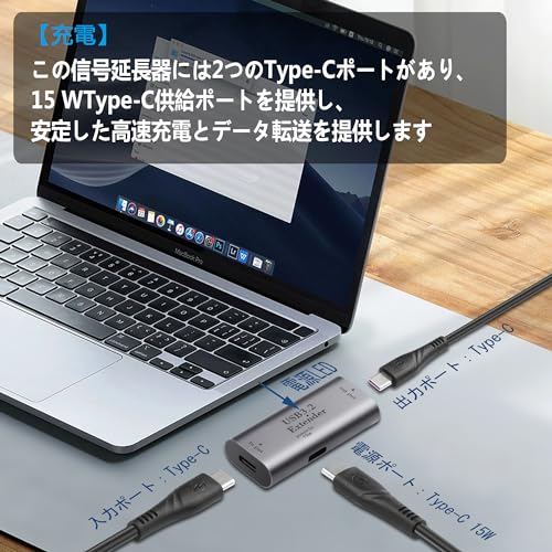 【充電】 この信号延長器には2つのType-Cポートがあり、15 WType-C供給ポートを提供し、安定した高速充電とデータ転送を提供します。電源LEDは、延長器の電源状態を確認するのに便利です。
