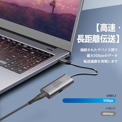 【高速・長距離伝送】 双Type-Cポート信号増幅器は、接続されたデバイス間で最大5Gbpsのデータ転送速度を実現します。10メートルの長距離高速伝送が可能で、延長器を追加接続するごとにさらに5メートル延長できます。