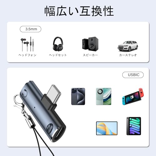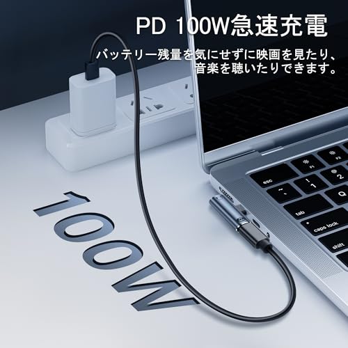 ・充電アダプター 仕様: ポート:USB-Cオス-3.5 mmメス、100 W PD Type C充電コネクタ 材質:アルミニウム合金+PVC 1.USB C-3.5mmヘッドフォンジャックアダプタは、PD 100Wまでの急速充電プロトコルをサポートし、安全で安定しています。